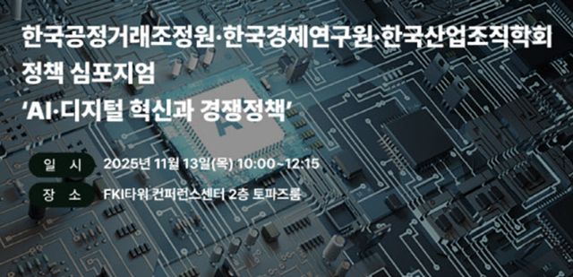 한국경제인협회 한국경제연구원은 한국공정거래조정원, 한국산업조직학회와 함께 오는 13일 오전 10시 서울 여의도 FKI타워 컨퍼런스센터 2층 토파즈룸에서 ‘AI·디지털 혁신과 경쟁정책’을 주제로 정책심포지엄을 개최한다고 5일 밝혔다.