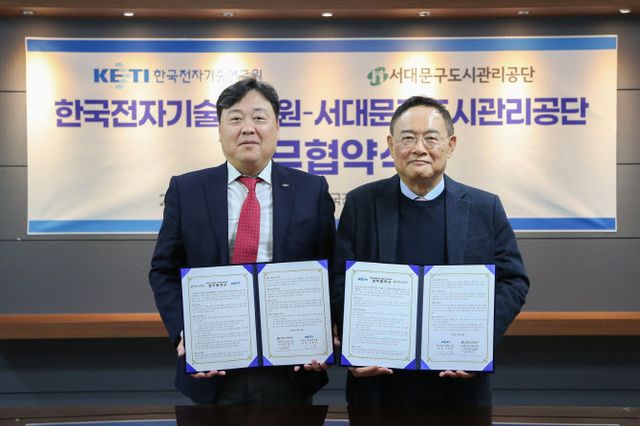 KETI와 서대문구도시관리공단은 지난 4일 경기도 성남 KETI 본원에서 공공서비스의 디지털 전환 및 정보통신기술(ICT) 적용 강화를 위한 업무협약을 체결했다고 5일 밝혔다.