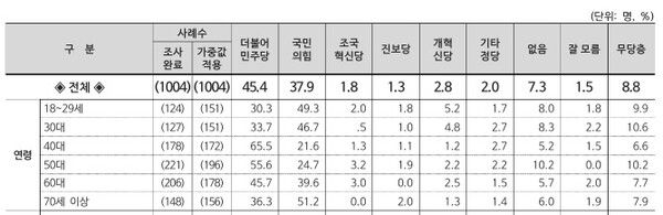 조란 맘다니의 승리와 대조적으로, 한국의 집권당인 더불어민주당은 청년층 지지 급락이라는 위기에 직면해 있다. 리얼미터가 에너지경제신문 의뢰로 10월 30∼31일 실시한 여론조사에 따르면, 20대 청년층의 국민의힘 지지율은 49.3%, 민주당 지지율은 30.3%로 나타났다. 19%포인트 격차다.