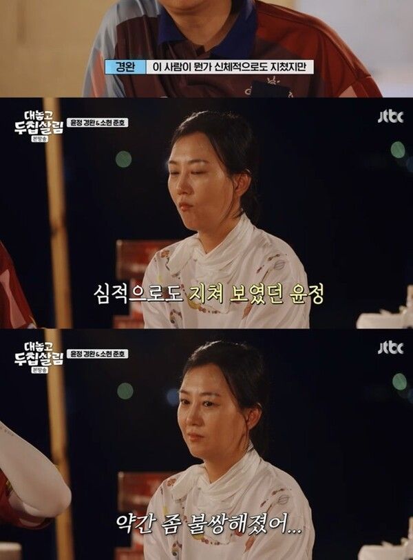 도경완은 "이 사람이 신체적으로도 지쳤지만, 그거보다 중요한 게 심적으로도 지친 상태라는 게 느껴졌다. 그래서 (장윤정을 대하는) 내 모드를 바꿔보자고 생각했다. 약간 불쌍해졌다"고 말하며 아내에 대한 애틋한 마음을 드러냈다.