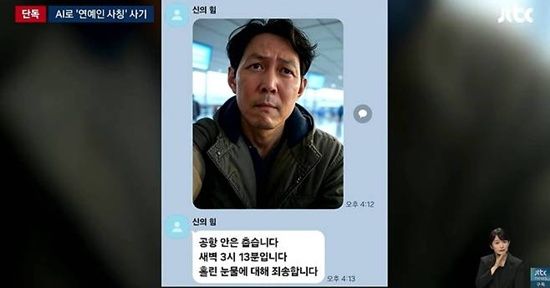 이정재도 사칭 피해를 당했다. JTBC 보도에 따르면 이정재 사칭범은 AI로 제작한 가짜 사진과 위조된 운전면허증 등을 활용해 50대 여성을 속여 5억원을 편취했다. 사칭범은 실제 이정재인 척 AI로 만든 공항 셀카를 보내거나, 피해자에게 '여보', '꿀'이라고 부르며 자연스럽게 연인 관계인 것처럼 속였다. 50대 여성은 지난 6개월 동안 총 5억 원을 뜯긴 것으로 전해졌다.