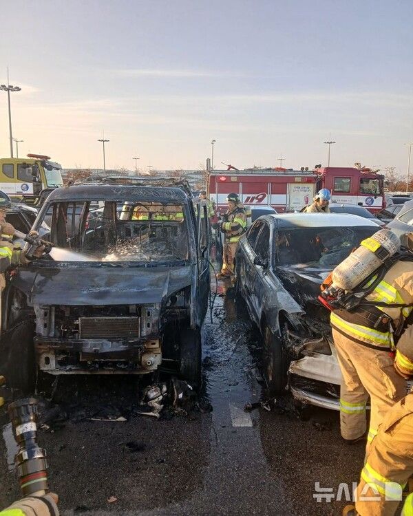뉴시스 보도에 따르면, 5일 인천소방본부에 따르면 이날 오후 4시29분께 인천 중구 인천국제공항 제2여객터미널 장기주차장에 세워진 마사다밴에서 화재가 발생했다.