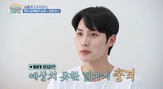 결과를 들은 김준호는 "정우 머리둘레나 얼굴형을 보면 커 보이지 않는다. 근데 검진 결과는 조금 당황스러웠다"며 예상치 못한 결과에 충격을 받았다고 속마음을 드러냈다.
