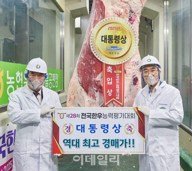 동원홈푸드는 5일 충북 음성에서 열린 ‘제28회 전국한우능력평가대회’에서 대통령상을 수상한 최고 등급의 한우를 대회 사상 최고가인 9401만 원에 낙찰받았다. 올해의 대통령상 한우는 1++A등급, 출하체중 911kg, 도축체중 553kg을 기록했으며, 거래가는 1kg당 17만 원으로 올해 거래된 전체 한우 평균 경매가 대비 9배 이상 비싸다.