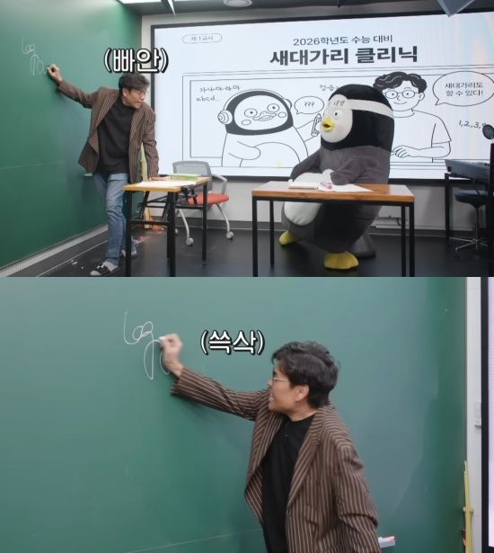 최근 '자이언트 펭tv' 유튜브 채널에는 '이번 수능 수학은 이걸로 끝!!!'이라는 제목의 영상을 통해 펭수가 수능 수리영역 일타강사로 유명한 정승제를 만나 수학 족집게 강의를 받는 모습이 담겼다.