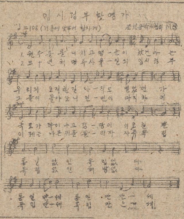 국립중앙도서관은 개관 80주년을 맞아 오는 11일부터 12월 31일까지 개최하는 전시 ‘해방의 소리, AI로 담다’에서 ‘임시정부환영가’의 악보를 최초로 공개한다고 6일 밝혔다. AI 기술로 복원한 노래도 함께 선보인다.