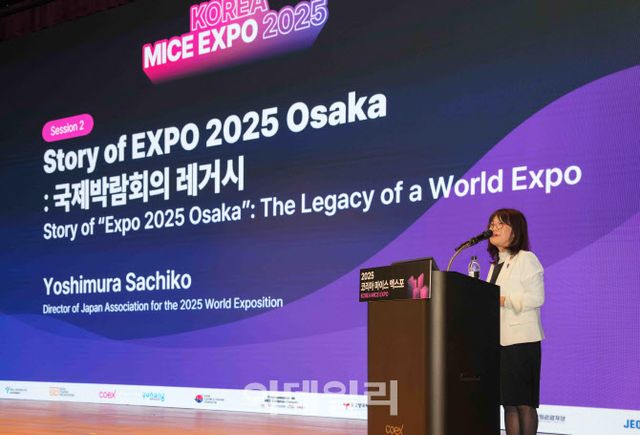 | ‘2025 코리아 마이스 엑스포’(KME)에서 강연을 하고 있는 2025오사카엑스포 조직위원회 요시무라 사치코(Yoshimura Sachiko) 홍보국장 (사진=한국마이스협회) |