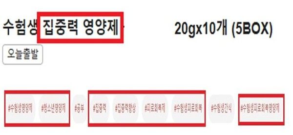 식품 또는 건강기능식품에 대해 '수험생 영양제', '기억력', '집중력', '긴장 완화' 등의 표현으로 부당광고한 온라인 게시물은 45건 적발됐다.