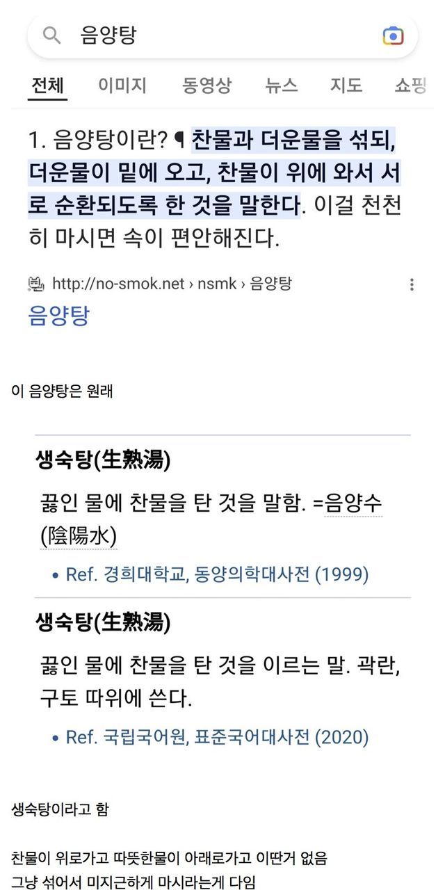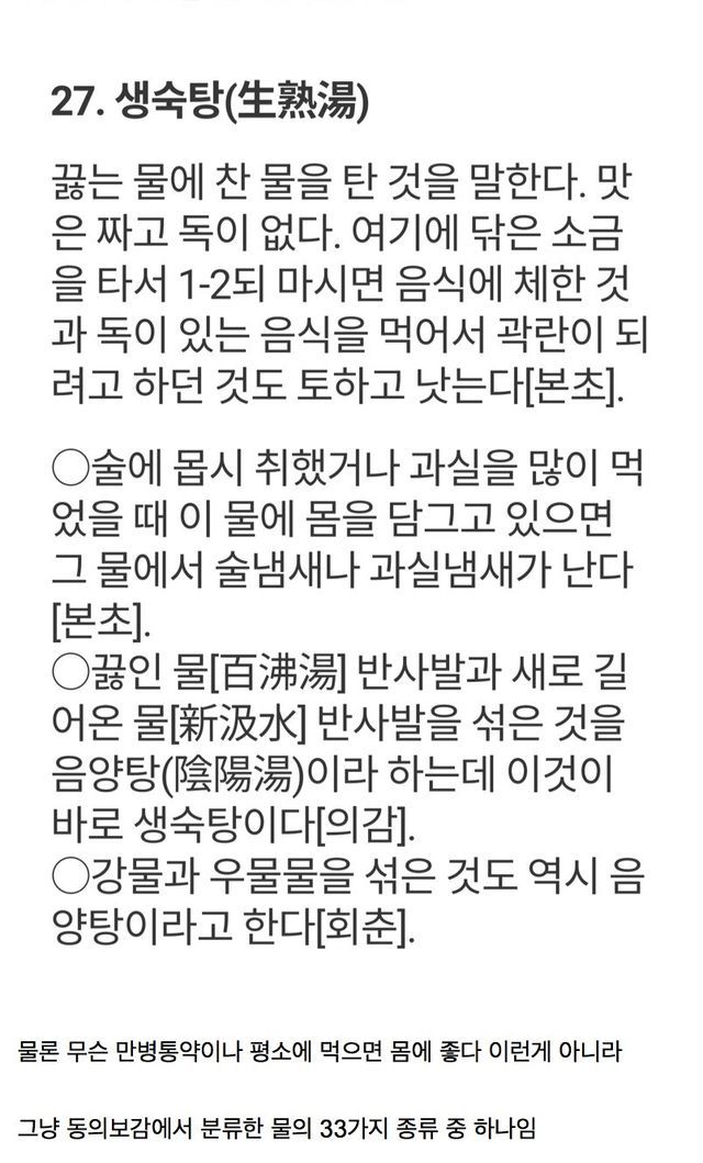 원래의 음양탕은 설사에 복용하는 미지근한 물로
