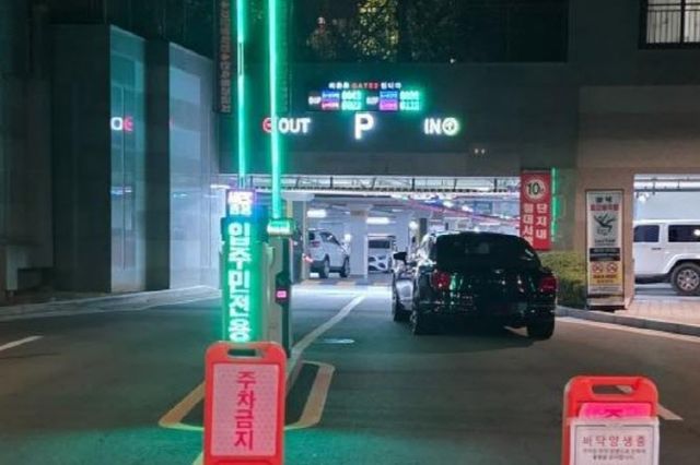 차주인 50대 A씨는 “정문 쪽 공사 때문에 후문으로 돌아가달라”는 경비원 안내에 불만을 품고 후문 입구에 주차한 것으로 전해졌다.