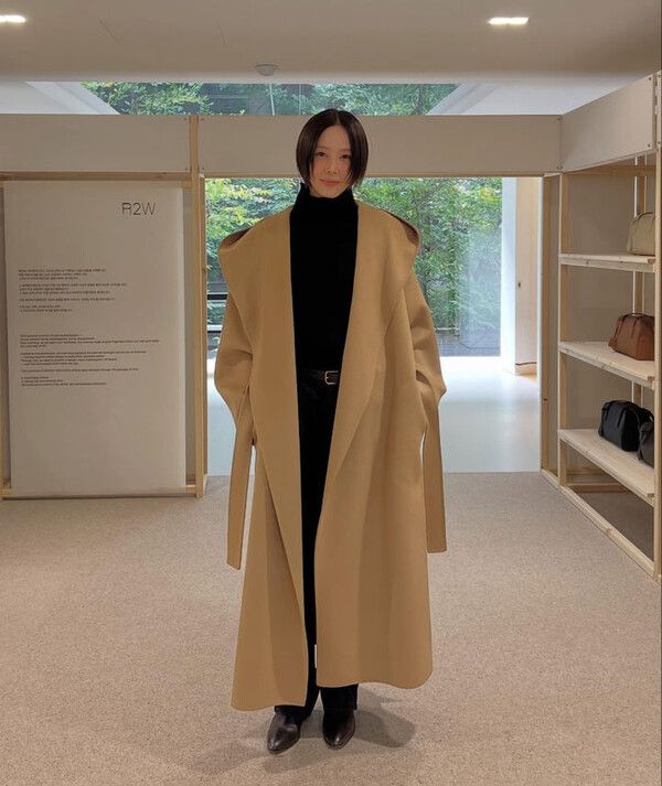사진 속 김나영은 바지 주머니에 손을 넣고 있다.