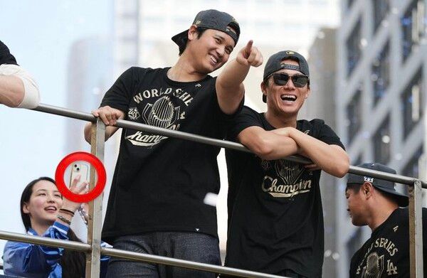 뉴시스 보도에 따르면, LA 다저스의 월드시리즈 2연패 기념 카 퍼레이드가 지난 3일(현지시각) 미국 캘리포니아주 로스앤젤레스 도심에서 펼쳐졌다. 다저스를 대표하는 '간판 스타' 오타니 역시 아내 마미코와 함께 나타나 사진을 찍으며 카 퍼레이드를 즐겼다.