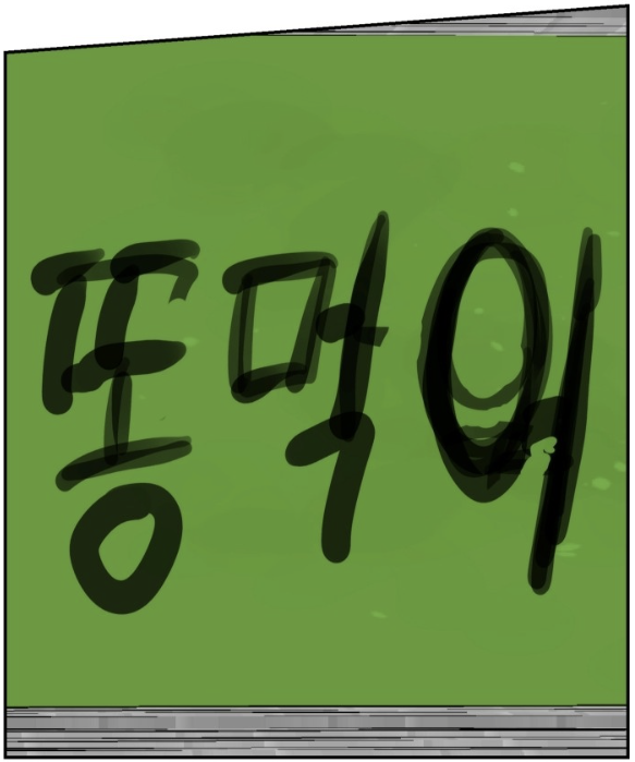 라는 혼잣말을 중얼거리다가 칠판 뒤에 가려진