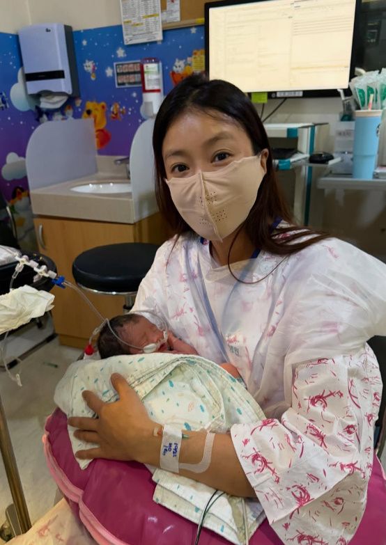 공개된 사진 속에는 둘째 딸을 품에 안고 있는 이시영의 모습이 담겨 있다. 병원 내부 모습뿐만 아니라 산후조리원의 모습까지 담겨 있다.