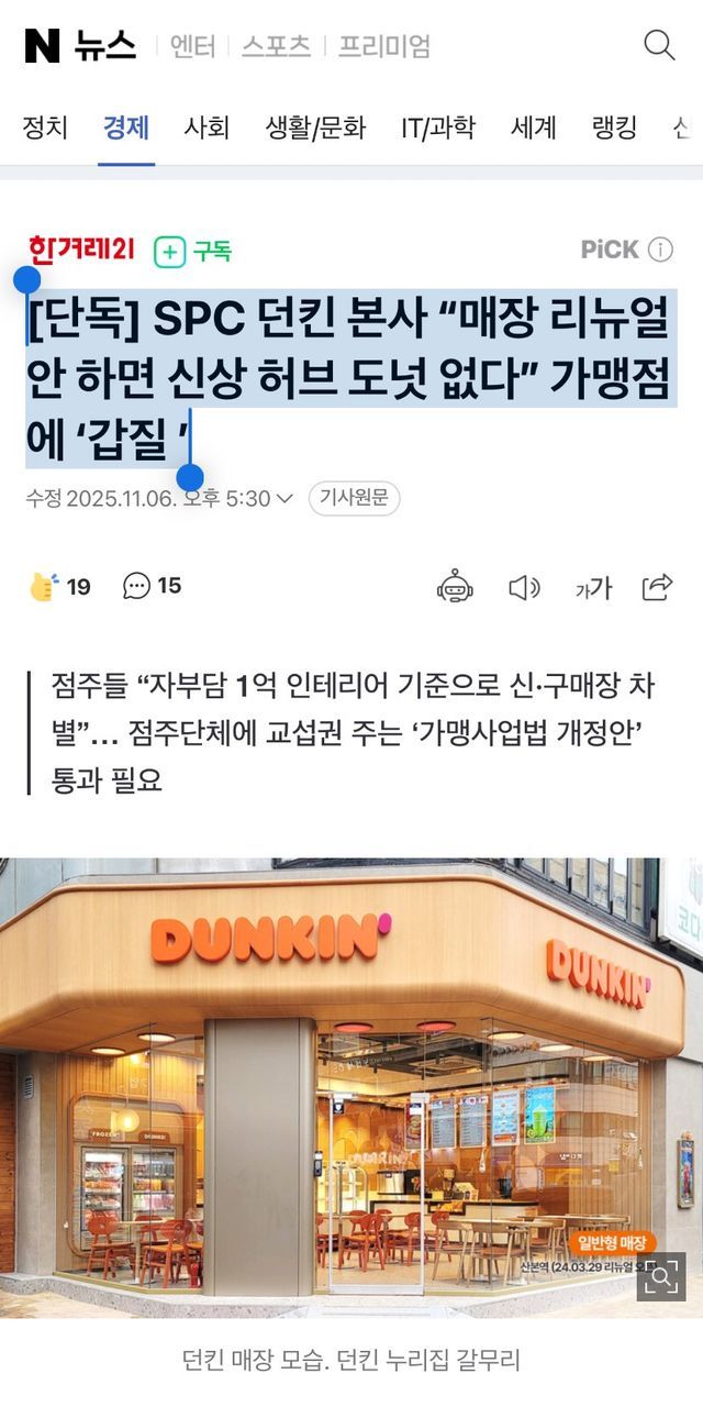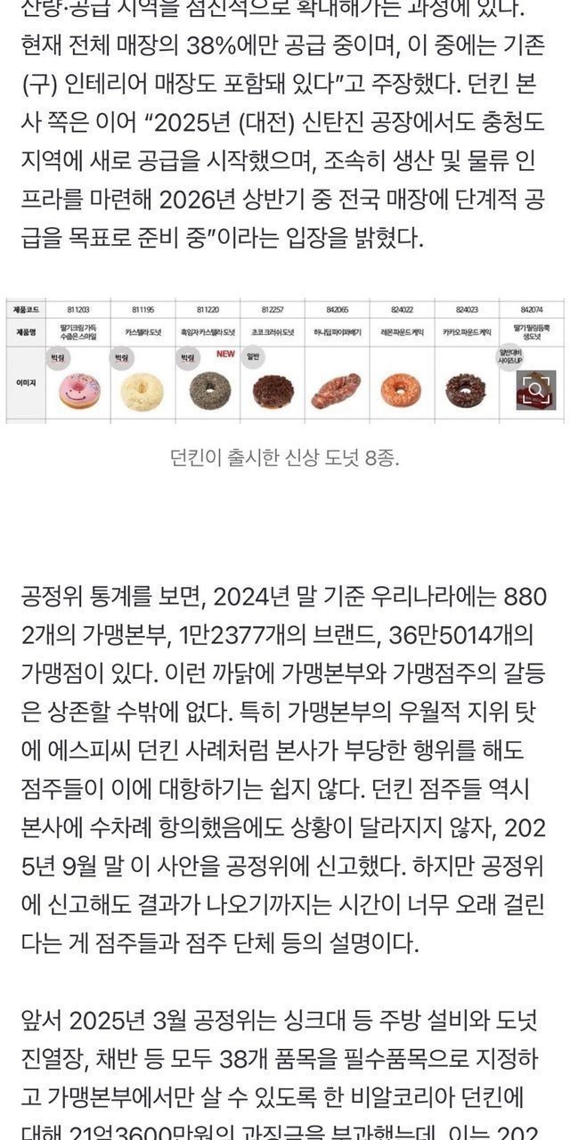 SPC 던킨 본사 “매장 리뉴얼 안 하면 신상 허브 도넛 없다”