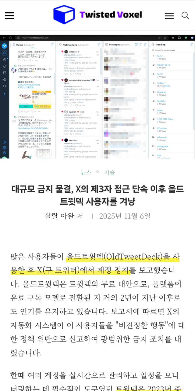 - 올드트윗덱 사용자들이 X 규칙위반을 이유로 대규모 일시정지됨
