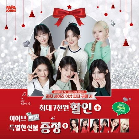 행사 기간은 11월7일부터 12월31일까지로, 라지 사이즈 이상 피자 구매 시 할인 혜택과 함께 아이브 포토카드 세트를 제공한다. 할인 금액은 사이즈별로 △라지 4000원 △패밀리 5000원 △파티 7000원이다.