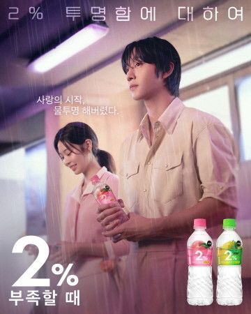 광고는 '물투명 니어워터' 콘셉트 아래 비 내리는 도시의 감성적인 배경을 통해 두 주인공의 사랑과 이별을 영화처럼 담아냈다. 과거 '2% 부족할 때'의 대표 CM송이었던 '사랑은 언제나 목마르다'를 두 배우의 목소리로 새롭게 재해석해 세대 간 공감을 불러일으켰다.