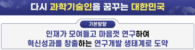 정부는 국가과학자제도 신설, 해외 우수인재 2000명 유치, 대학원 장학금 수혜율 확대, 학연 겸직 활성화, 평가등급제 폐지, 정부 총 지출 대비 5% 수준 R&D 확대 등을 주요 내용으로 담은 방안을 추진하겠다고 밝혔다.