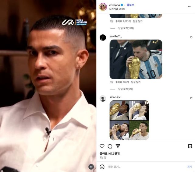 호날두 인스타그램. 피어스 모건과의 인터뷰 예고편 게시글. / 호날두 인스타그램