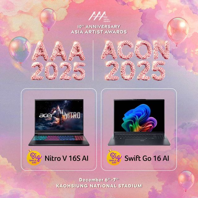에이서는 G마켓·옥션에서 진행되는 빅스마일데이 행사 기간 동안 AMD 라이젠 프로세서 탑재 노트북 구매 고객을 대상으로 AAA 2025 및 ACON 2025 티켓과 가오슝 왕복 항공권을 증정하는 이벤트를 진행한다. 행사 제품으로는 게이밍 퍼포먼스와 AI 효율성을 갖춘 니트로 16S AI와 초슬림 AI 노트북 스위프트 고 16 AI가 포함된다.