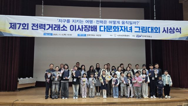전력거래소는 본사가 있는 전남·나주 지역 상생 차원에서 7년째 다문화자녀 가정 대상 그림대회를 열어오고 있다. 올해도 지난 10월 약 70명의 다문화가정 어린이와 그 가족이 참가한 가운데 그림대회를 열고 이날 유치부부터 초·중등부에 이르는 우수작 15점을 선정해 시상했다.