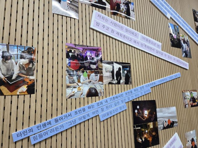 7일 서울 마포 강북노동자복지관 대강당 한편은 아쉬움이 푹푹 묻어난 글귀들로 메워졌다. 올해 말 운영을 종료하는 십대여성일시지원센터 '나무'를 이용한 이들이 미처 하지 못한 말을 종이에 써 붙였다.