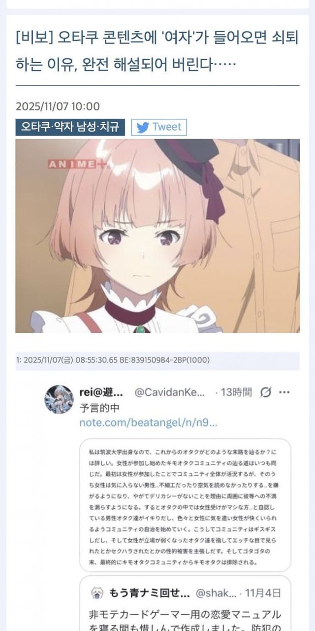 씹덕컨텐츠에 여자가 들어오면 안된다는 일본인들..