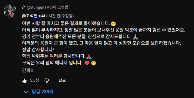 한국인 UFC 파이터중 이렇게 많이 응원받은 케이스가 있었나 싶을정도