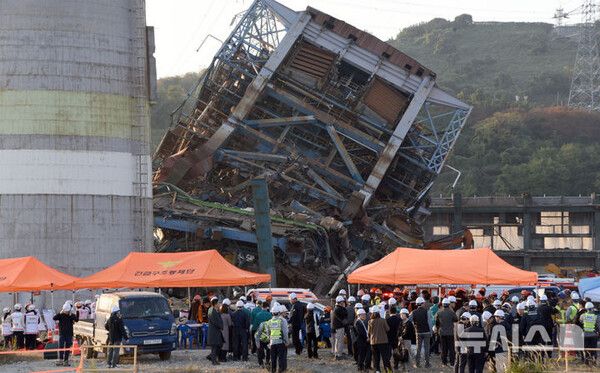 지난 6일 오후 2시2분께 한국동서발전 울산화력발전소에서 보일러 타워가 무너져 작업자 9명을 덮쳤다. 이 가운데 2명은 곧바로 구조됐으나 7명은 붕괴된 구조물에 매몰됐다.