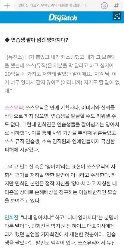 [디패]"양아치냐? 양아치다! 다르다"…민희진, 쏘스 반격의 보법