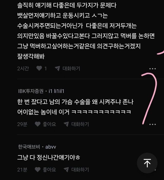 좋은말 해주는 새회사와 가슴수술시켜주면 된다는 애브비 ㄷㄷ