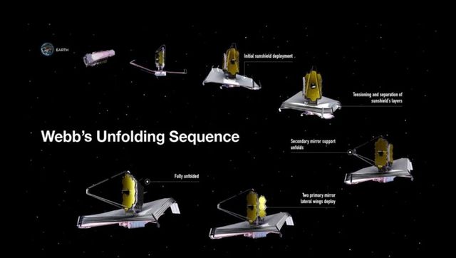 거대한 금빛 거울은 직경 6.5m, 순금 도금 처리로 적외선 반사율을 극대화했다. 이 황금의 눈은 지구로부터 150만km 떨어진 라그랑주 포인트(L2)에 자리 잡고 있으며, 지구와 실시간으로 명령을 주고받는다.