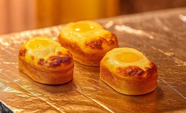 계란빵은 달콤하고 부드러운 빵 반죽 위에 통계란 하나를 올려 구워낸 간식으로 한입 베어 물면 고소한 빵과 촉촉한 달걀 맛이 어우러져 따뜻한 만족감을 준다.