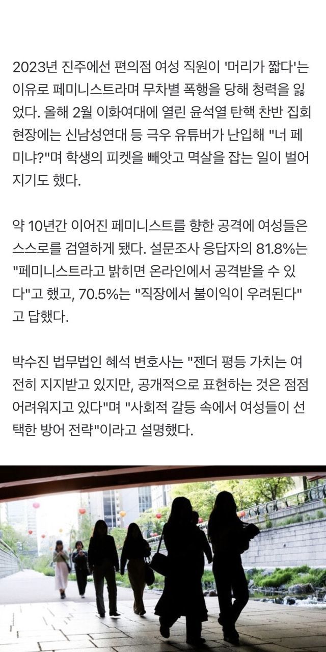 쏟아지는 공격, 낙인에 침묵하는 '스텔스 페미니즘'