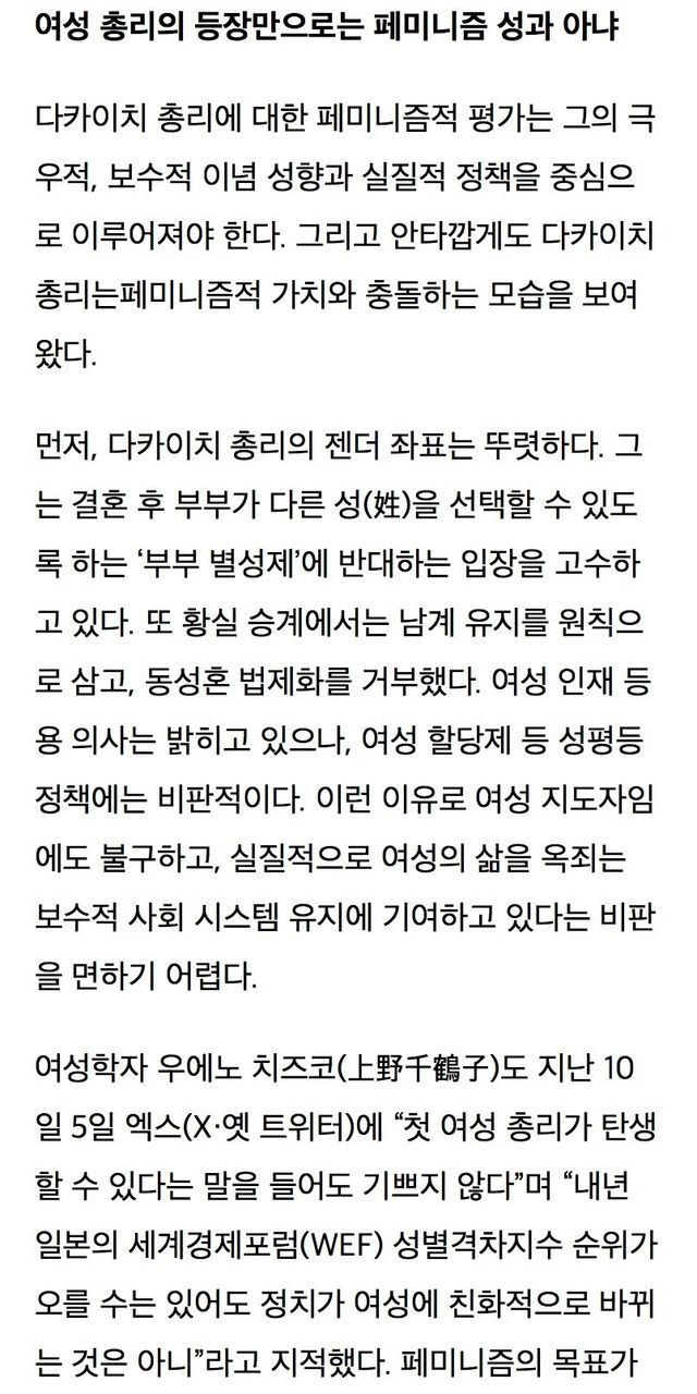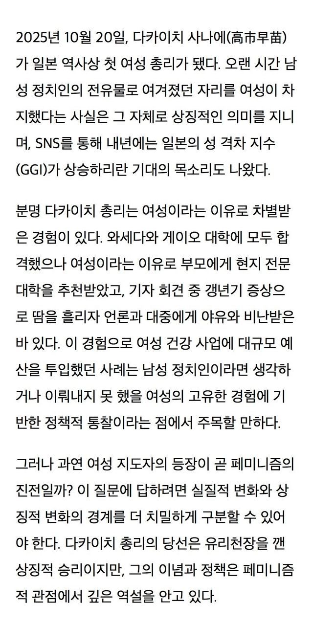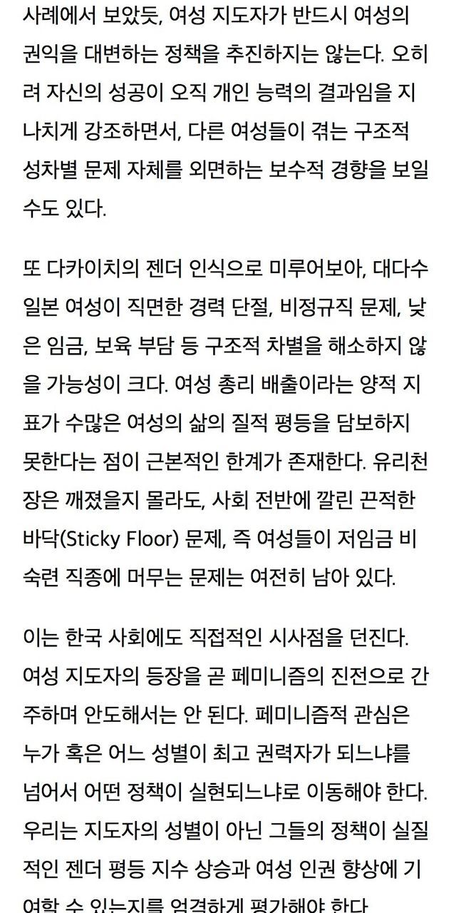 "여성 지도자 = 페미니즘의 진전?" 일본 최초 여성 총리의 역설