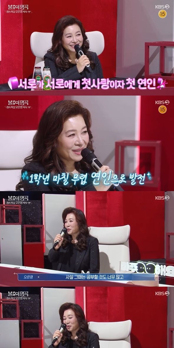 연세대 의대 입학 동기라고 밝힌 오은영은 "저희 남편이 첫사랑, 첫 연인인데 저만 혼자 그랬으면 억울했을 텐데 그의 표현에 의하면 남편도 첫사랑이자 첫 연인이라고 하더라"며 "입학 동기인데 1학년 마칠 무렵 연인이 돼서 연애를 시작했다. 사실 그때는 공부할 것도 많고, 머리 감을 시간이 없을 때도 있고 밤을 새울 때도 많았다. 그래도 할 건 다 한다. 연애도 한다"고 솔직하게 이야기했다.