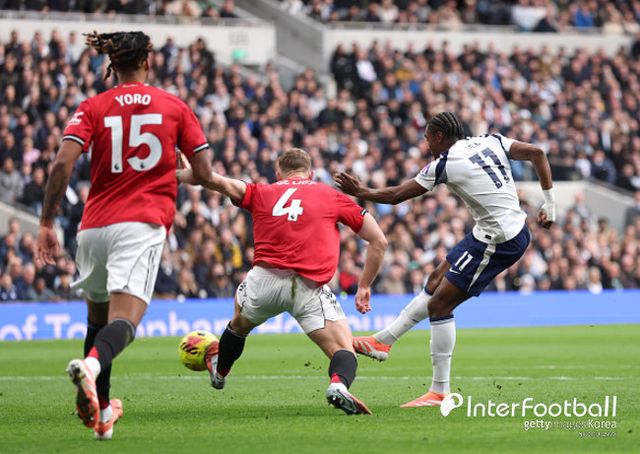 토트넘의 공격 작업이 더 날카로웠다. 전반 16분 존슨의 크로스를 히샬리송이 헤더로 연결했지만 제대로 맞지 않았다. 전반 17분 사르의 기습적인 슈팅은 허공을 갈랐다. 맨유도 당하고 있지 않았다. 전반 22분 쿠냐가 페널티 박스 안에서 슈팅했지만 사르가 막았다.