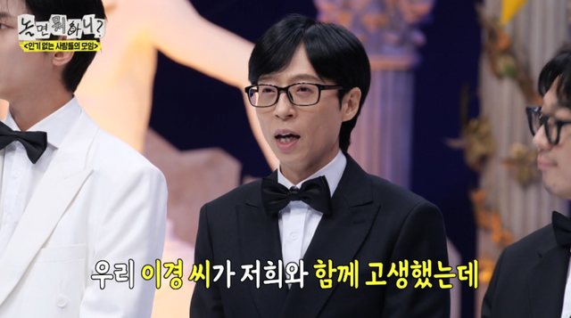 본격적인 모임 시작 전,유재석은 “다들 아시겠지만 3년여 동안 우리 이경 씨가 저희와 함께 고생했는데, 기사를 통해서 이미 많은 분들이 알고 계시겠지만 드라마, 영화 스케줄이 굉장히 많아서 제작진하고 함께 조율 끝에 저희 ‘놀면 뭐하니?’를 하차하게 됐다”고 설명했다.