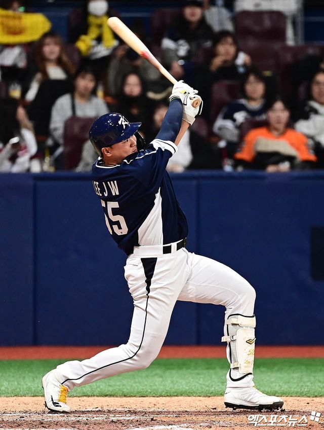 (엑스포츠뉴스 고척, 김근한 기자) LG 트윈스 팬들이 웃음을 못 참는다. 상무야구단 제대를 앞둔 외야수 이재원(LG)이 한국 야구대표팀에 갑작스럽게 합류해 인상적인 홈런을 쏘아 올렸다. 다만, 이재원이 도쿄돔으로 못 가는 상황이라 대표팀 입장에선 아쉬움도 남을 수밖에 없다.