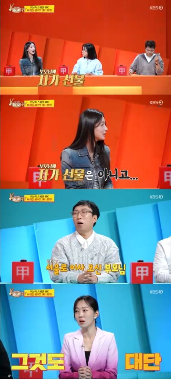 김숙은 미연이 부모님 집을 마련해드렸다면서 효도 플렉스가 남다르다는 얘기를 했다.
