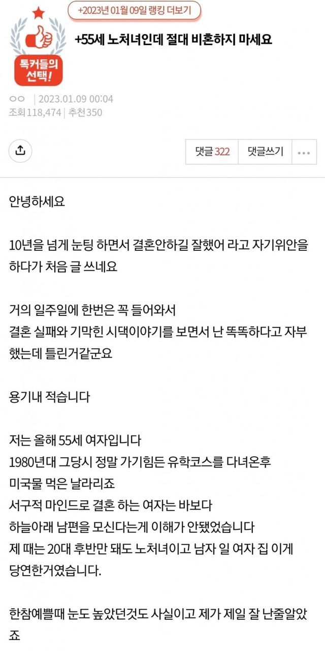 50대의 푸념 현재로선 환갑이 코앞인 할머니 ㅋㅋ