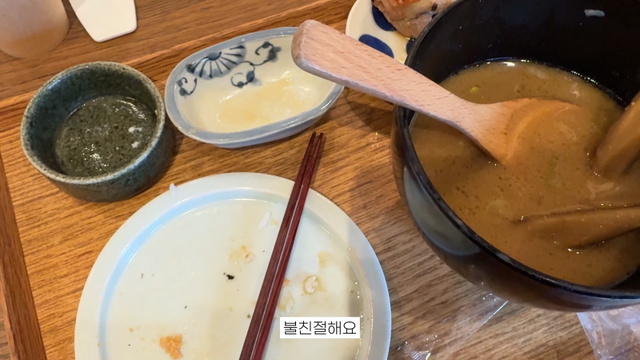윤승아는 정식을 먹고 “된장국은 약간 호불호가 갈릴 수 있는 맛”이라며 “한방 삼계탕 같다. 건강식 느낌”이라고 설명했다.