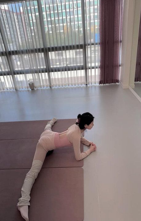 유연하게 다리를 찢는 수지의 모습이 눈길을 사로잡는다.