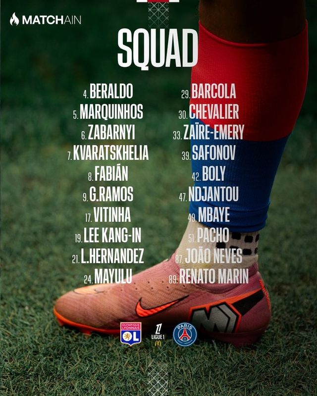 경기를 앞두고 PSG는 리옹 원정 스쿼드를 발표했다. 직전 유럽축구연맹(UEFA) 챔피언스리그(UCL) 바이에른 뮌헨전 부상을 입은 우스만 뎀벨레, 아슈라프 하키미는 빠졌다. 이강인을 비롯하여 흐비차 크바라츠헬리아, 곤살루 하무스, 비티냐, 브래들리 바르콜라, 워렌 자이르-에메리 등이 포함됐다.