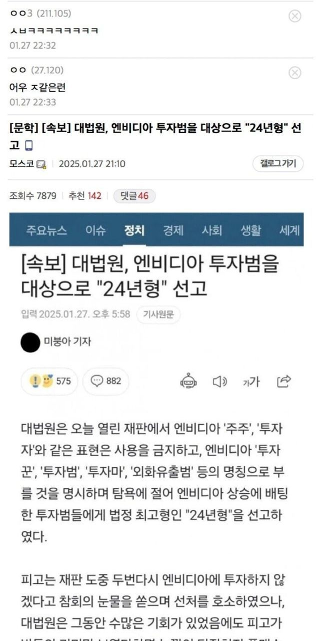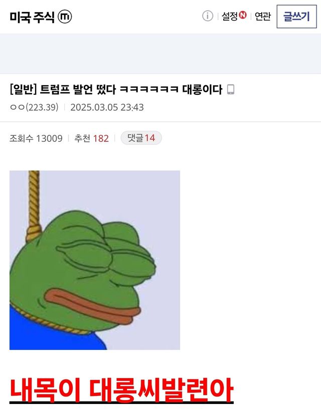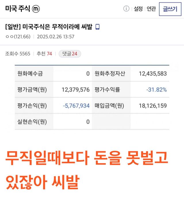 하락장에 미쳐버린 미주갤