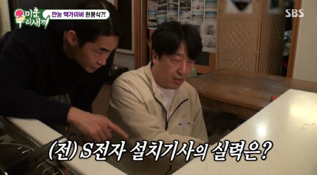 이런 가운데 에러가 뜨자 현봉식은 내 사수한테 전화해보겠다고 말했다. 알고 보니 현봉식은 S전자에서 설치 기사 일을 했던 것. 옛 사수에게 자문을 구한 현봉식은 식기세척기 부품 분리와 배수관 확인에 나섰다. 이어 식기세척기의 전원 버튼을 누르자 정상적으로 작동돼 모두를 놀라게 했다.
