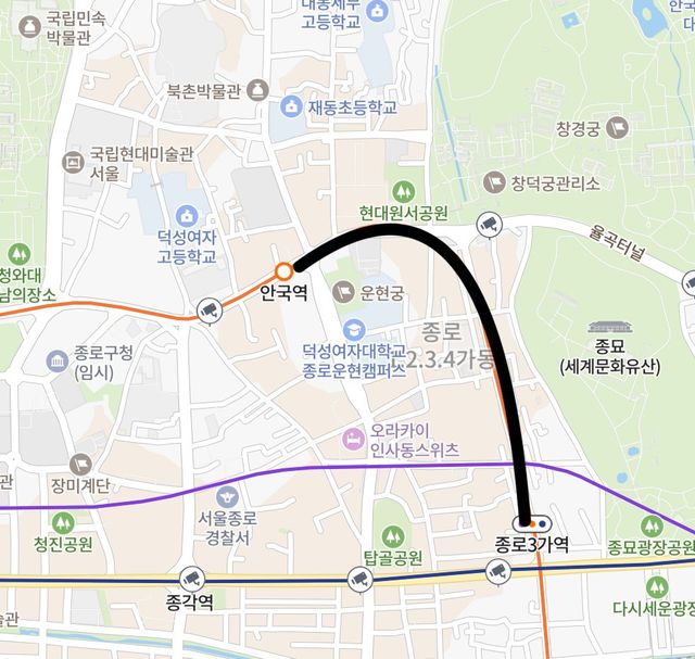 종로3가-을지로4가-ddp 모두 45km/h 곡선 제한이 있다.
