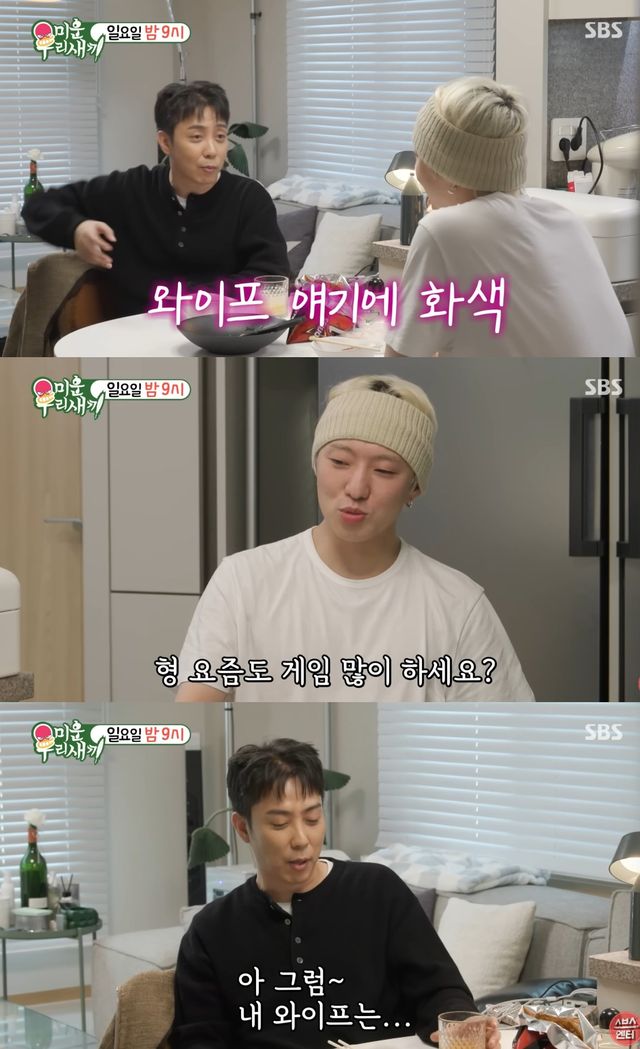 은지원은 "자기가 해서 나에게 주려고 하는 게 너무 예쁘잖아. 너무 아내 자랑인가"라며 팔불출 면모를 보였고, 신동엽은 "이야 은지원이"라며 달라진 그의 모습에 놀라움을 표했다.