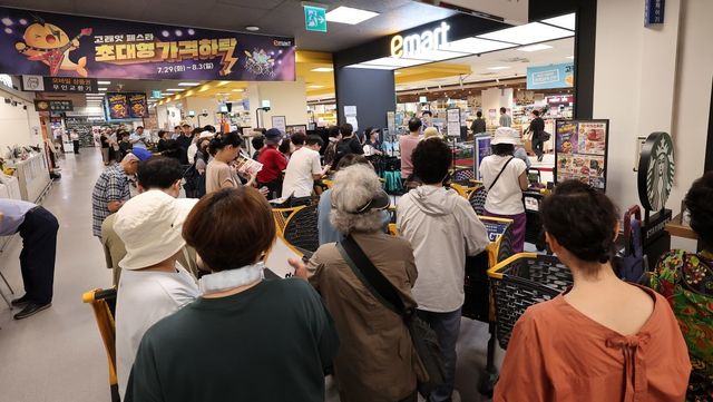 서울 이마트 용산점에서 고객들이 입장을 기다리고 있다. / 뉴스1